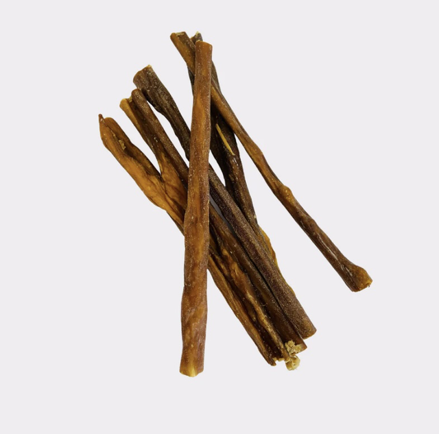 100% beef treat made from cow intestines, cooked then air dried, this is a slightly elastic, tasty snack without the risk of splintering. Perfect for smaller dogs or those with sensitive teeth. Cats love them too! Can be cut with scissors into small pieces for high value training treats.