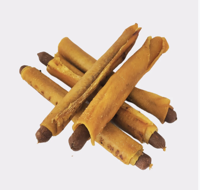 Slow roasted in their own juices to provide your dog with the ultimate British treat! A yummy Chicken Stick wrapped in a natural pork rind. Great for your dogs teeth and gums. Long lasting and high protein, great for days out!