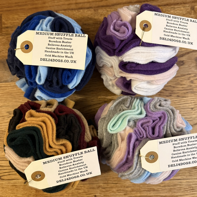 Your dog will love our handmade Snuffle Balls. They are a perfect way to alleviate boredom and anxiety. Get your dog working for their treats and watch their over all well being improve. Perfect for dogs that are on crate rest or recovery from an injury. Brain games are equally as important as outside time and your dog should have daily mental workouts.